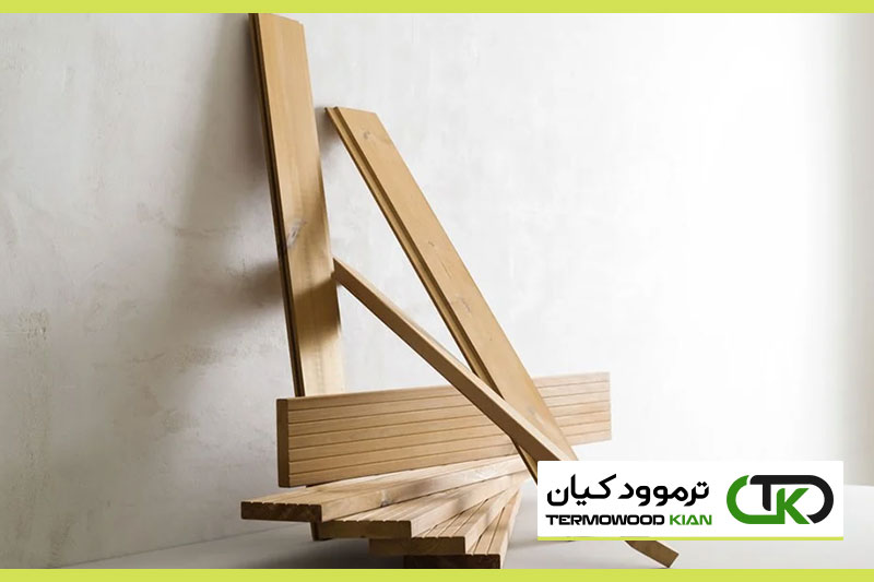 - تغییر رنگ: چوب ترموود معمولاً بعد از فرآیند حرارتدهی تیرهتر و جذابتر میشه. این تغییر رنگ به خاطر کاراملی شدن قندهای داخل چوبه و باعث میشه ظاهرش شبیه به چوبهای گرمسیری بشه که خیلی قشنگن.