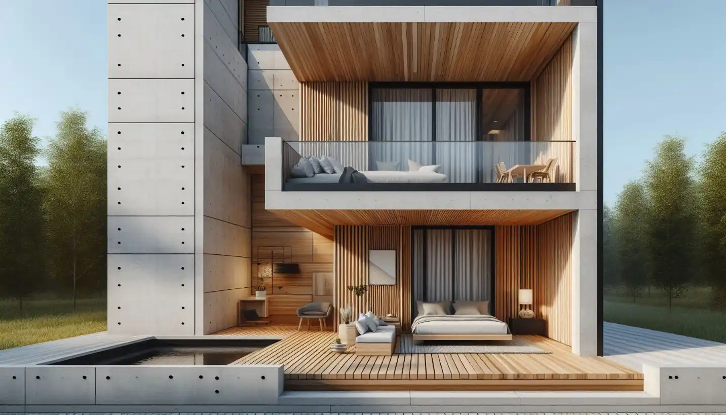 ترکیب چند متریال: مثلاً سیمان با کمی چوب یا آجر، هم شیک میشه، هم گرون درنمیاد.