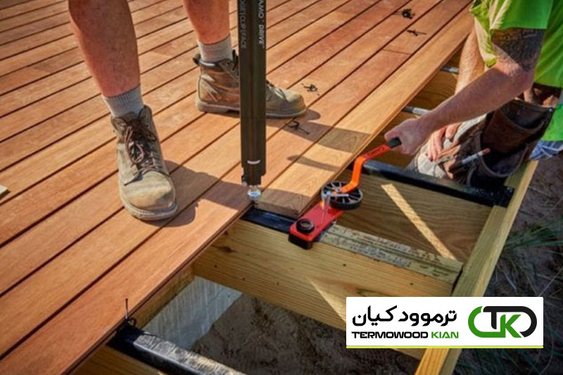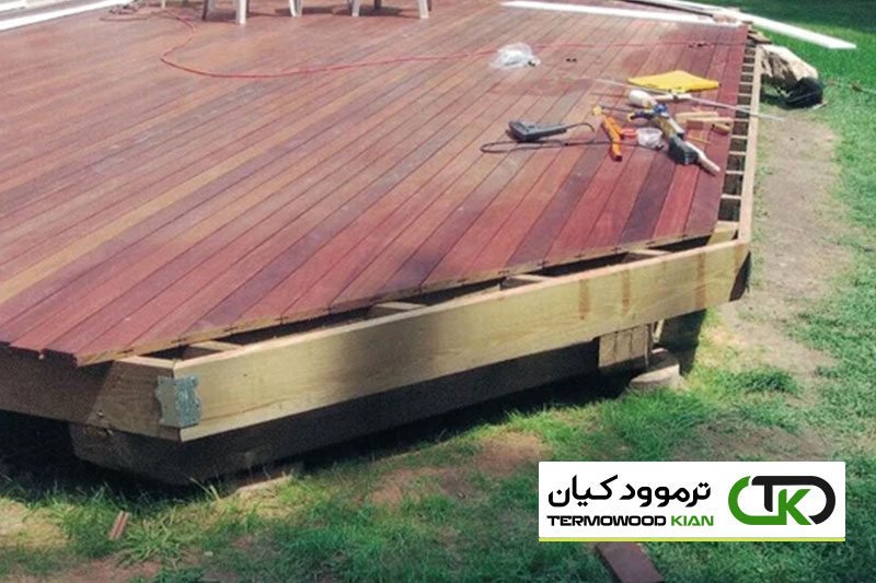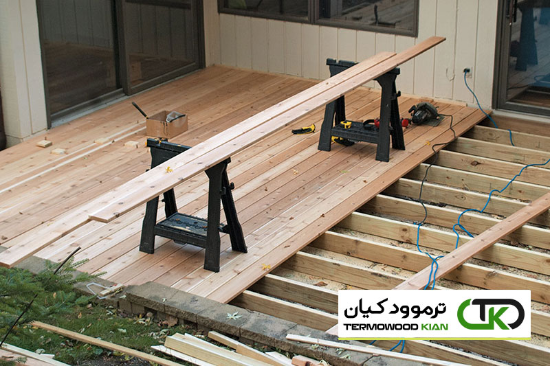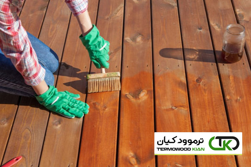 از آنجایی که این بالکن دارای فاصله بسیار کم و تهویه کم است، روکش روغن به هر چهار طرف تخته های بالکن اعمال می شود. این کمک می کند تا رطوبتی که ممکن است از زمین در زیر بالکن در پایین تخته های بالکن بالا برود، از بین برود. از آنجایی که این نیز یک نصب بالکن بست پنهان است، باید به این نکته نیز توجه داشت که این مرحله از اهمیت بیشتری برخوردار است تا به حداقل رساندن حجامت تختههای بالکن در طول زمان کمک کند. توصیه ترموود کیان خواندن این مقاله است: چوب ترمو بهترین گزینه برای ساخت بالکن | ۳۰ نکته جالب