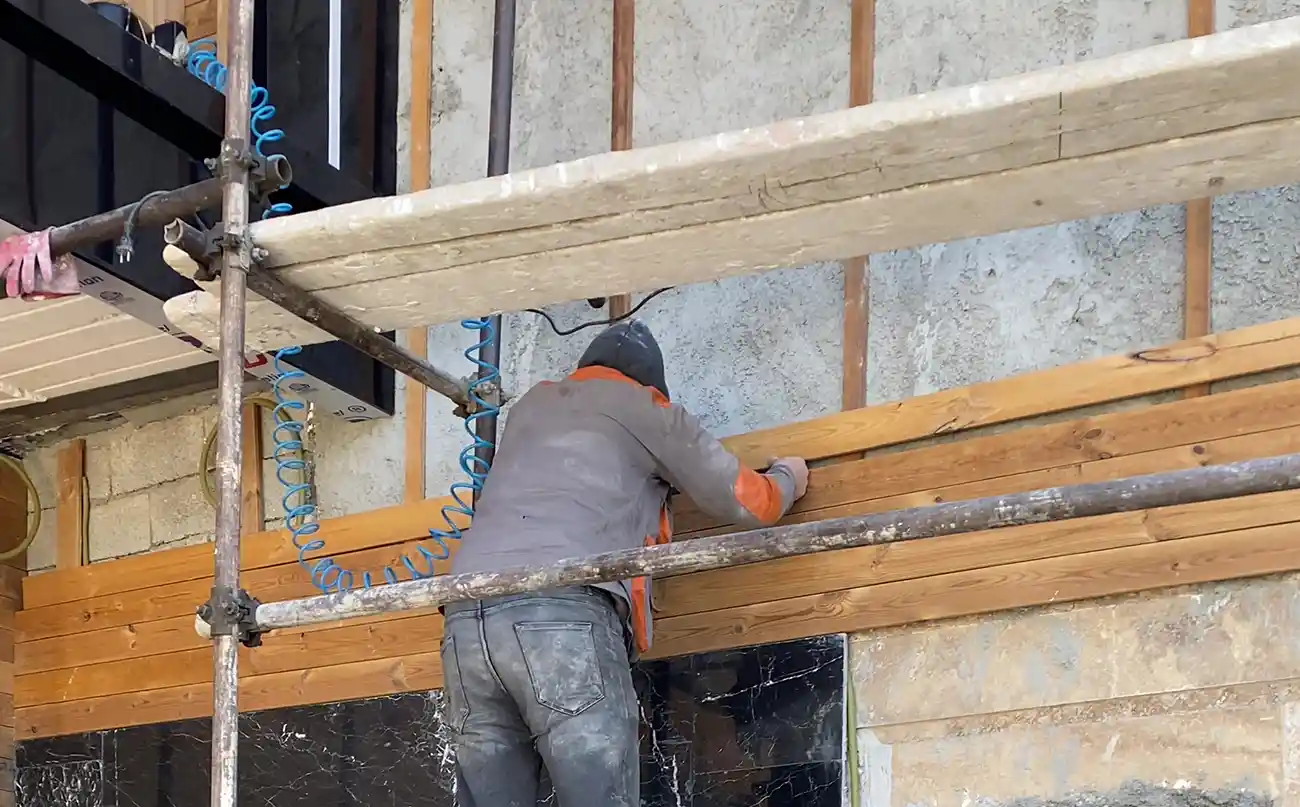 - 📏 همه چی باید تراز باشه: وقتی قراره ترمووود کنار مصالح دیگه نصب بشه، باید همه سطحها رو دقیق تراز کنی. اگه یهجا بالا باشه یهجا پایین، کل نمای کار بهم میریزه.