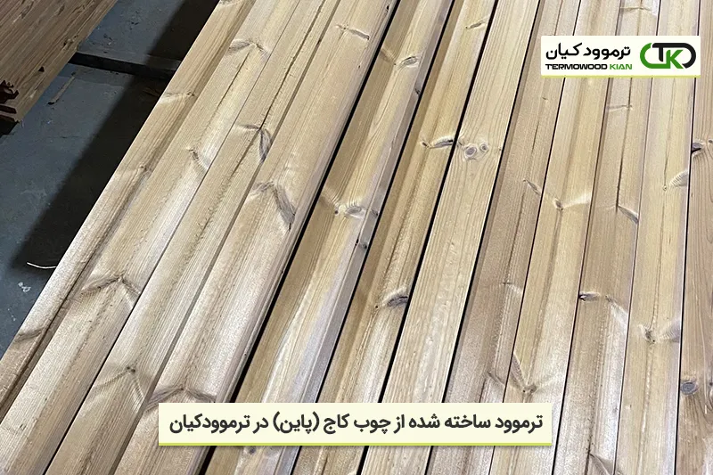 چوبهای سوزنی مثل کاج یا پاین (Pine) معمولاً خیلی خوب با فرآیند ترمووودسازی کنار میان. این چوبها سبک هستن و بعد از ترمو شدن، هم مقاومتر میشن و هم ظاهرشون خیلی شیکتر میشه. چون چوبهای سوزنیبرگ مثل کاج بعد از ترمو شدن در برابر رطوبت و آفتاب دوام بالایی پیدا میکنن و سبک، مقاوم و زیبامیشن. برای فضاهای باز مثل بالکن، نما یا حتی محوطهسازی، کفپوش، تایل، پرگولا، آلاچیق خیلی خوبن. در مجموعه ترموودکیان از این نوع چوب برای تولید ترمووود درجه یک ایرانی استفاده میشه.