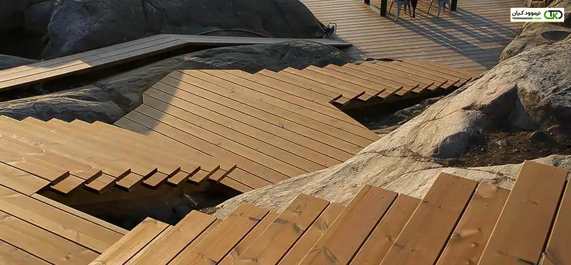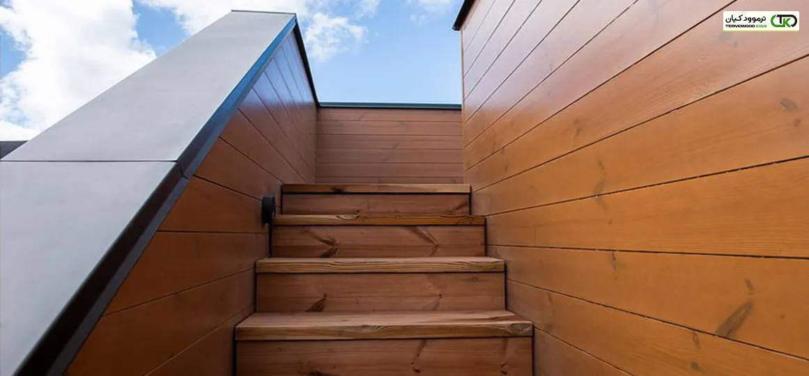 - ترموود، چوب مقاوم برای داخل و بیرون: ترموود نوعی چوب بهبودیافته است که با استفاده از حرارت بالا مقاومسازی شده است. این نوع پلهها ضد رطوبت و مقاوم در برابر پوسیدگی هستن، واسه همین هم تو فضای باز و هم داخل خونه عالی جواب میدن. اگه دنبال یه گزینه بادوام میگردی که ظاهر طبیعی هم داشته باشه، ترموود یه انتخاب خوبه. برای کسب اطلاعات بیشتر به صفحه قیمت چوب ترمو مراجعه کن!