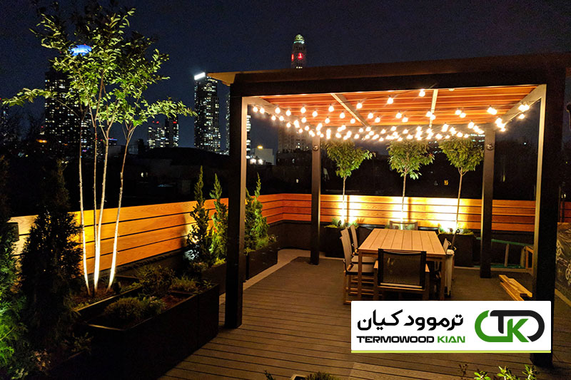 - پایداری زیست محیطی: استفاده از ترموود، که فرآیند تولید آن کمتر به محیط زیست آسیب میزند، باعث شده تا گزینهای سبز برای طراحی فضای بام باشد.